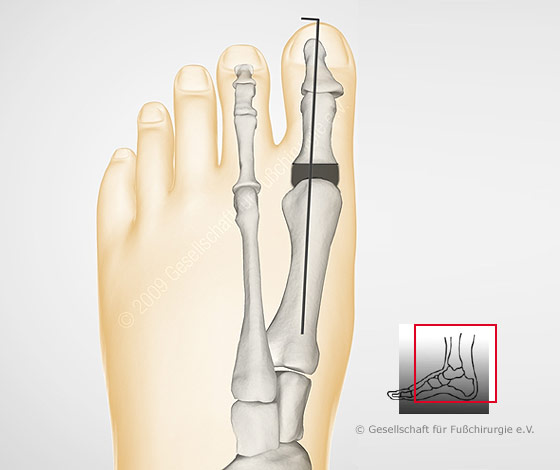 Neugebildete Knochenanlagerungen werden entfernt. Je nachdem, wie weit die Erkrankung fortgeschritten ist, kann gelenkerhaltend operiert werden. Bei einer so genannten Verkürzungsoperation im Bereich des 1. Mittelfußköpfchens oder auch des Großzehengrundgliedes wird das Gelenk entlastet.