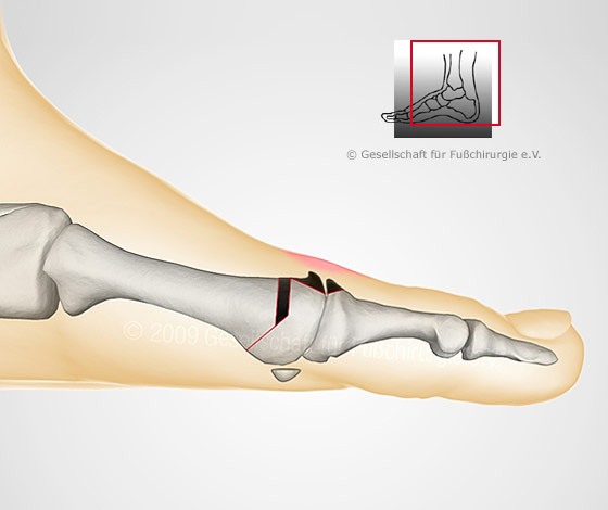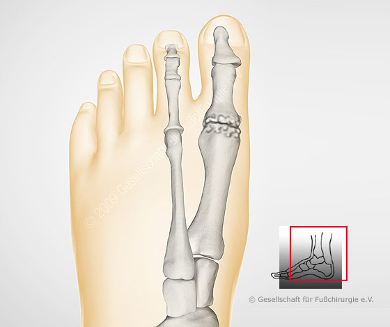 Diese Veränderungen können auch als Folge einer Fehlstellung der Großzehe oder nach rheumatischen Gelenkentzündungen entstehen. Der Gelenkknorpel oder das ganze Gelenk sind teilweise oder auch vollständig zerstört.