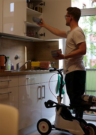 Erweiterungen wie die Gehstützen-Halterung oder der Stauraum für kleinere Gegenstände, erhöhen die Flexibilität und Unabhängigkeit im täglichen Leben. Doch nicht nur Funktionalität steht für ORTHOSCOOT im Zentrum der Überlegung, sondern auch das Design. Ein medizinisches Hilfsmittel dient schließlich nicht nur orthopädischen Zwecken, sondern erfüllt auch einen emotionalen Nutzen. Denn mit seinem modernen Design verschafft er dem Patienten ein selbstbewusstes Auftreten auf Augenhöhe mit seinen Mitmenschen.