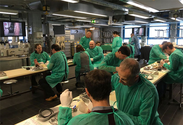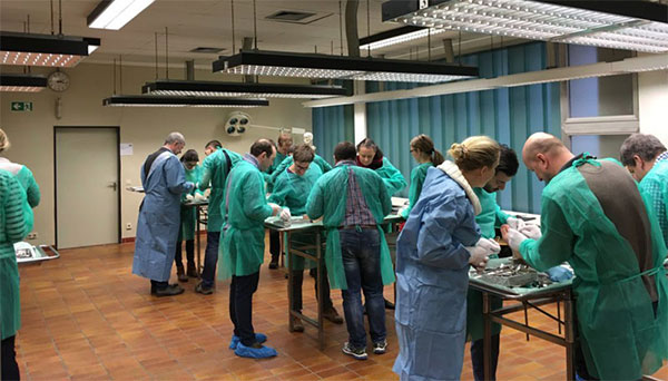 Im Februar 2017 kamen 40 Teilnehmer zum Masterkurs in das Institut für Anatomie in der Universitätsmedizin Rostock zusammen. Im Wechsel zwischen Vorträgen am Vormittag und praktischen Übungen am Nachmittag konnte die Theorie dann auch in Zweiergruppen am Präparat in die Praxis umgesetzt werden.