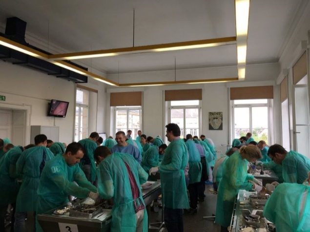 Der erste Masterkurs in Erlangen am 30. Juni und 1. Juli 2017 war mit 50 Teilnehmern, die sich im anatomischen Institut eingefunden hatten, ausgebucht. Im Wechsel zwischen Vorträgen am Vormittag und den praktischen Übungen am Nachmittag, konnte dann in Zweier-Gruppen die Theorie am Präparat in die Praxis umgesetzt werden. Wir danken allen mitwirkenden Unternehmen sowie der Erlanger Anatomie für Ihre tolle Unterstützung.