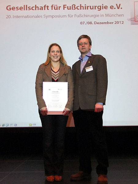 Das Forschungsstipendium der GFFC und der Firma Axomed in Höhe von 5.000 Euro geht an Dr. Hubert Hörterer (München). Er plant eine retrospektive Untersuchung der subjektiven Behandlungsergebnisse nach Frakturen des Processus lateralis tali.