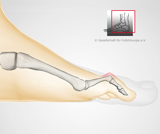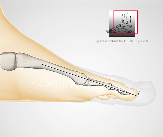 Man spricht von "sagittalen Deformitäten", wenn von der Seite gesehen eine Fehlstellung der Kleinzehe im Mittel- und/oder Endgelenk besteht, wobei diese Fehlstellung beweglich oder eingesteift sein kann.