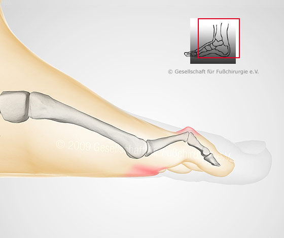 Durch den Druck des Knochens unter der Haut und auch durch Reiben des Schuhwerks kommt es zur Ausbildung von schmerzhaften Hornhautschwielen, bisweilen auch unter dem Mittelfußknochenköpfchen.
