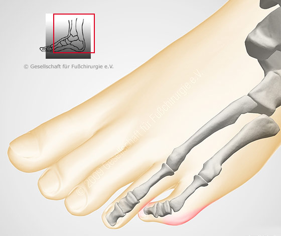 Abhängig von der Art der Fehlstellung (Krallenzehe/Klauenzehe) ist auch eine Korrektur am Zehenendgelenk erforderlich.
